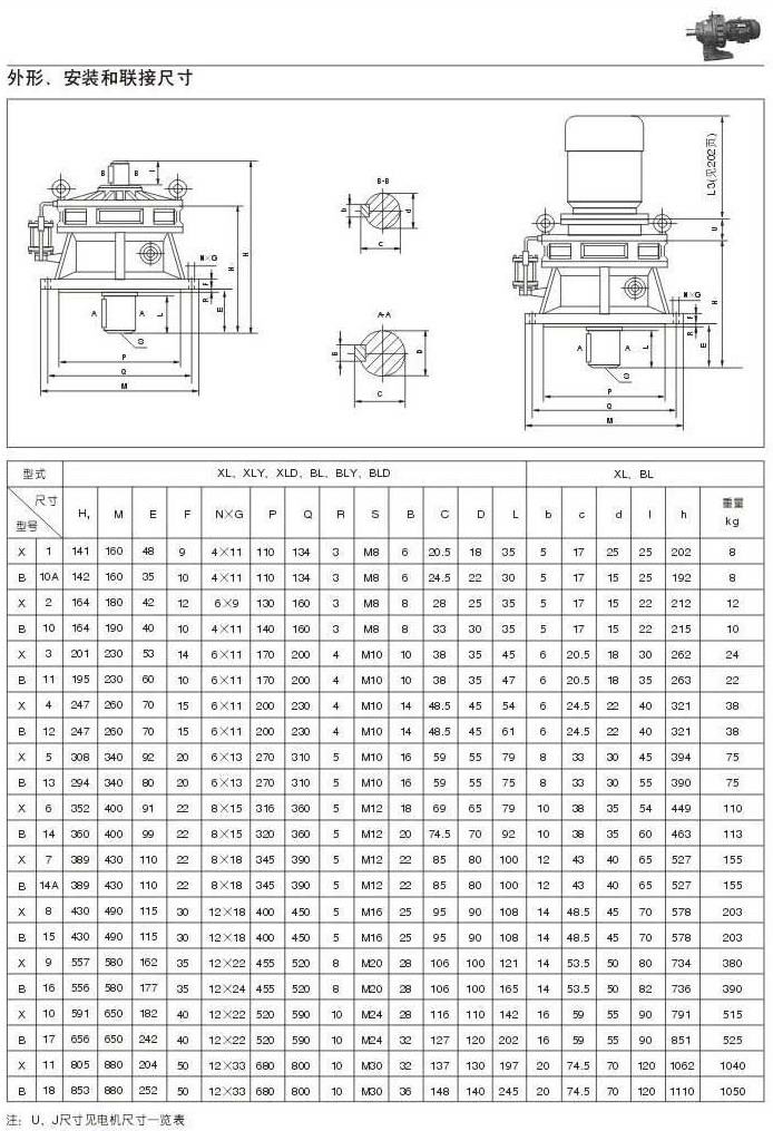 X . B擺線針輪減速機外型圖,安裝和聯(lián)結(jié)尺寸三 29