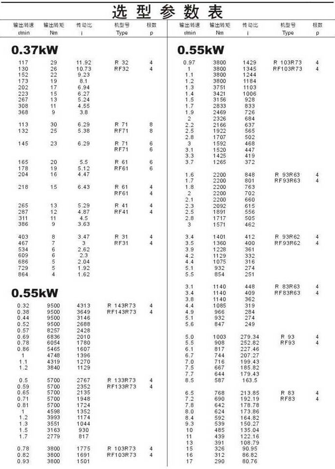 選型參數(shù)表0.37kW(續(xù)),0.55kW